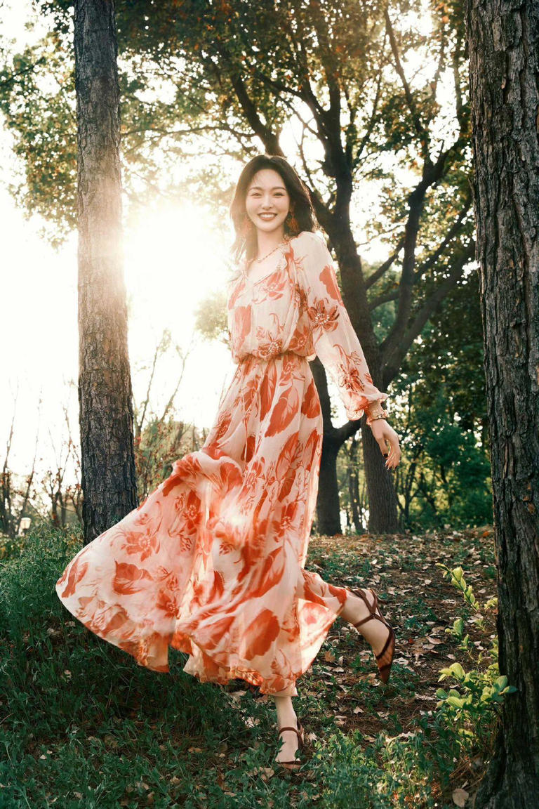 这款长裙以清新淡雅的色调为主,或许是轻盈的雪纺,或许是柔滑的丝绸,材质的选择本身就透露出一种夏日独有的清凉与舒适。而胸前的开叉设计,则是整件裙装的点睛之笔。它巧妙地打破了传统长裙的沉闷与单调,通过适度的肌肤裸露,不仅展现了唐嫣完美的锁骨与颈部线条,更增添了几分性感与神秘。这样的设计,既不失高雅,又充满了现代感,让人不禁为之倾倒。